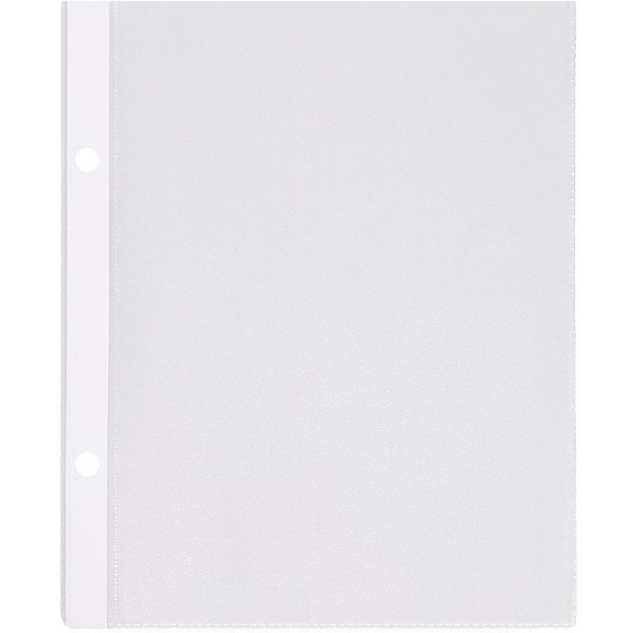 Miękka, mocna groszkowa folia PVC; zgrzew w kształcie litery "U"; boczna perforacja umożliwia wpięcie do segregatora z dowolnym ringiem;