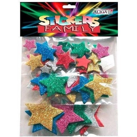 Naklejki brokatowe wycinane z pianki w kształcie gwiazdek.