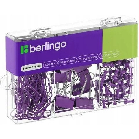 Zestaw 40 pinezek 70 spinaczy 10 klipów fioletowy 353632 BERLINGO