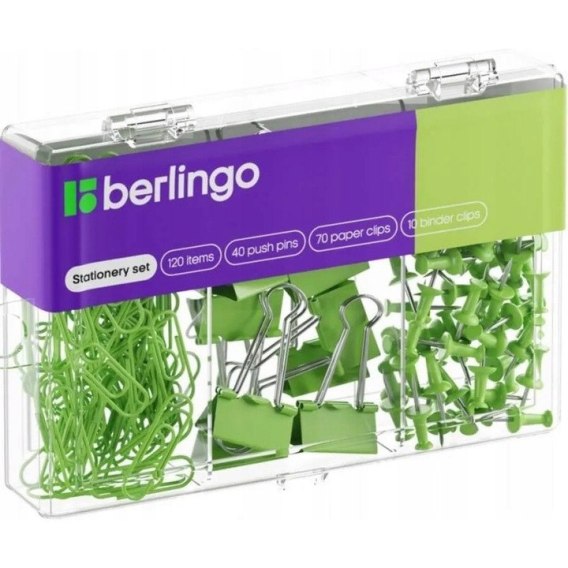 Zestaw 40 pinezek 70 spinaczy 10 klipów zielony 353630 BERLINGO